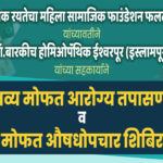कॅन्सर वेदनामुक्ती आणि चष्म्यापासून मुक्तीसाठी विशेष होमिओपॅथिक उपचार; नामदेवराव सूर्यवंशी (बेडके) महाविद्यालयात सकाळी १०:३० पासून…
