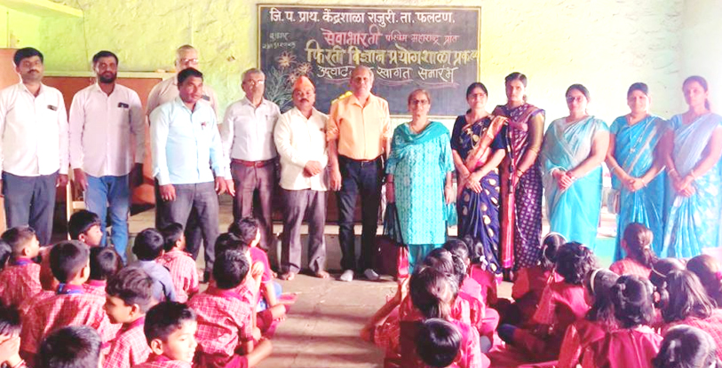 सेवा भारती पश्चिम महाराष्ट्र प्रांत फिरती विज्ञान प्रयोगशाळा प्रकल्पाच्या वतीने फलटण तालुक्यातील राजुरी येथील जिल्हा परिषद प्राथमिक शाळेत बुधवार दि. 24 सप्टेंबर 2025 रोजी विज्ञान प्रयोगशाळेच्या उद्घाटन कार्यक्रमाचे आयोजन करण्यात आले.